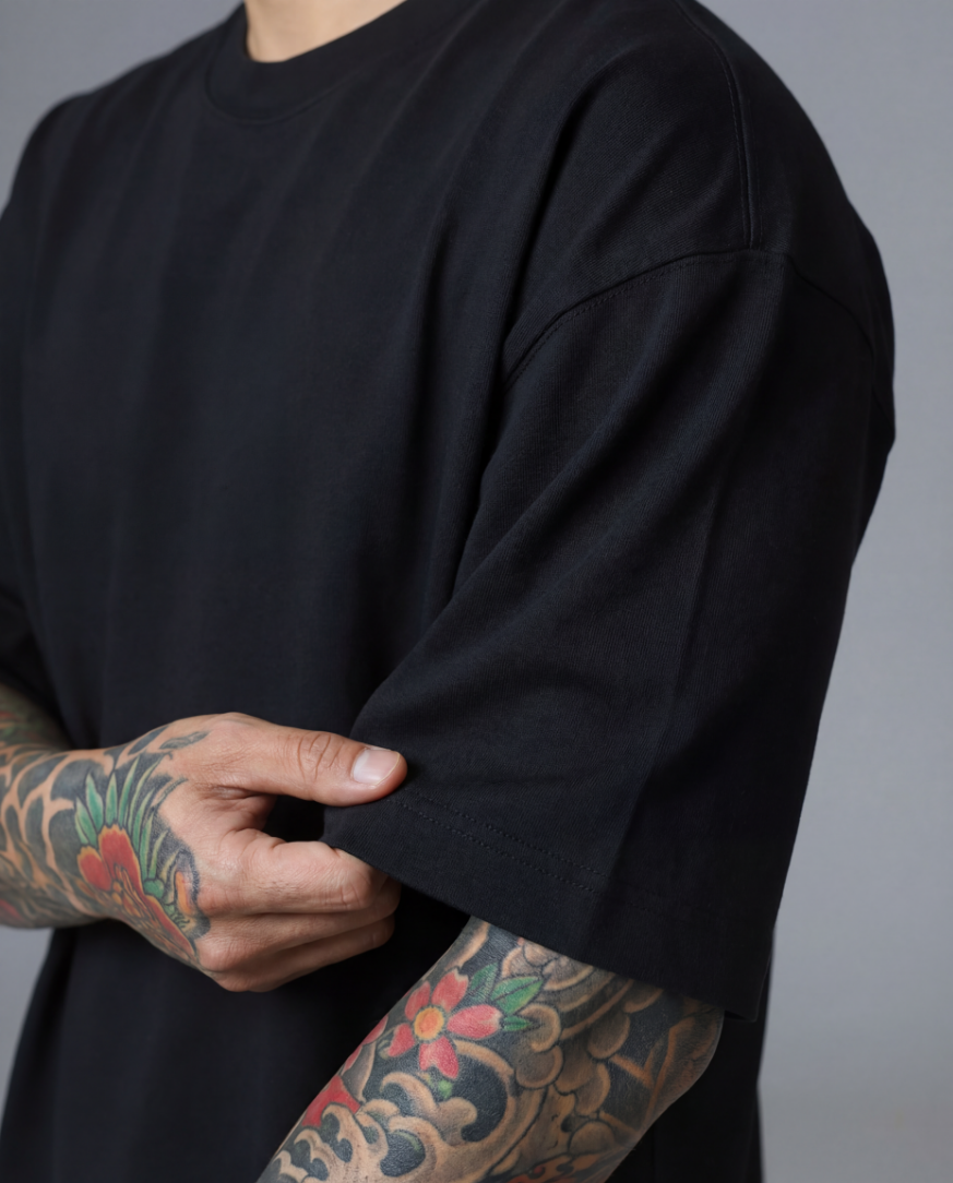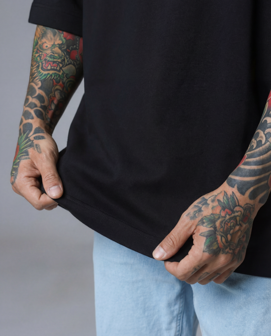 Camiseta oversized preta da coleção REPTAR BBZY, tecido 100% algodão premium, caimento solto e ideal para compor qualquer look.